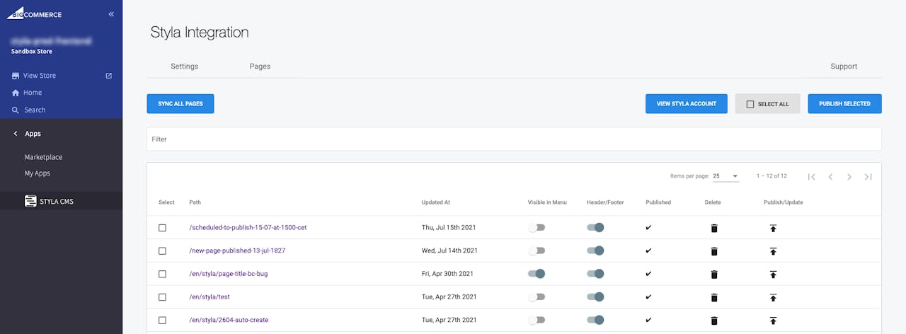 If you don’t see your Styla pages published on your BC storefront or it shows outdated versions, try debugging in this sequence: